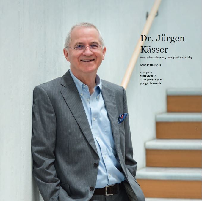 Über die Personalführung kam Jürgen Kässer zur Psychologie und Psychoanalyse. Neben seiner Tätigkeit als analytischer Coach entwickelt Dr. Kässer Methoden für den konstruktiven Umgang mit den täglichen inneren Blockierungen („Innerer Schweinehund“) und mit tiefer liegenden Widerständen, die sich in der persönlichen Lebensgestaltung und in der Unternehmensstrategie niederschlagen.